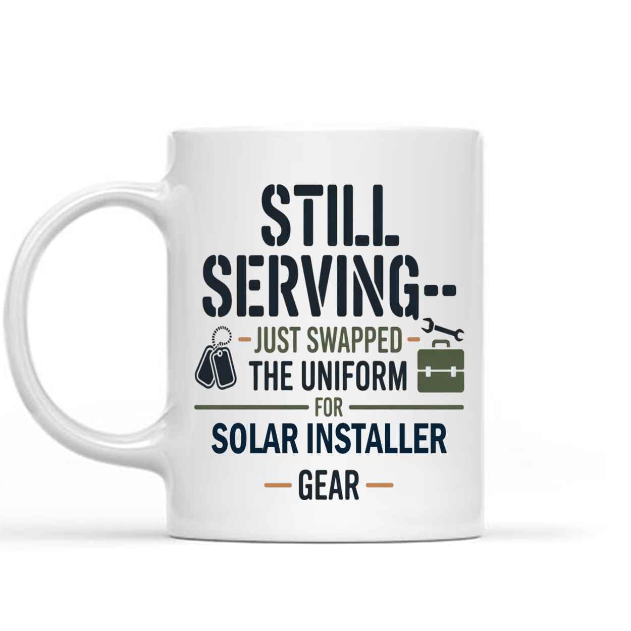 Funny Gift Funny Gift for Solar Installer, for, Still Serving— Swapped the Uniform Solar Installer Gear 11 Oz White Ceramic Coffee Mug
